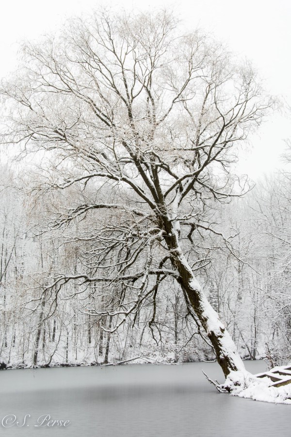 This lovely, amazing tree leaned over the pond for many years, and seemed to defy gravity. It was there when my girls, who are grown now, were small and we picnicked under it in Summer, and in the Fall it stood over the beginning of the hiking trail. In Winter this city park became a wonderland after a good snow, and in Spring the wildflowers and ferns sprouted. There was beauty all during the year, but sadly last year I went after a beautiful snowstorm, and it was gone. I don’t know its fate, if it came down on its own, or did a city crew help it on its way?